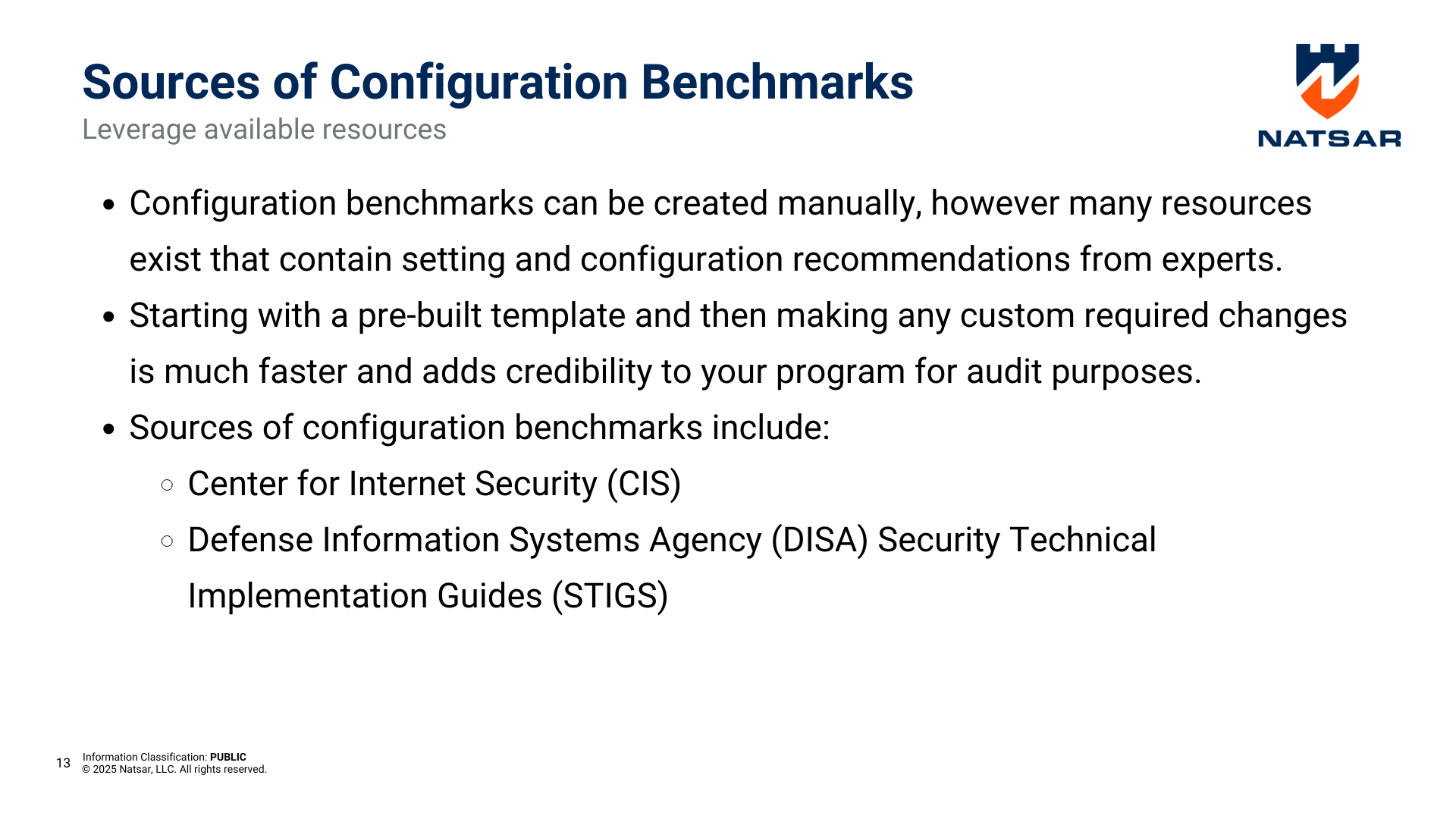 Earn Continuing Professional Education (CPE) credits at no cost from Natsar. Maintaining configuration compliance and system hardening are critical to a strong cybersecurity posture. Josh Moulin, founder of Natsar, explores key principles and strategies for consistent configurations and reducing vulnerabilities. Learn about CIS Benchmarks, DISA STIGs, and tools like CIS-CAT Lite and DISA SCAP.